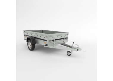 Przyczepa do przewożenia ciężkich ładunków z hamulcem najazdowym wyposażona jest we wzmocniony dyszel stały. Burty o wysokości 400 mm z blachy stalowej ocynkowanej. Przednia i tylna burta...